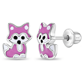 Silberne Kinder-Ohrringe: Fuchs mit Schraubverschluss rosa