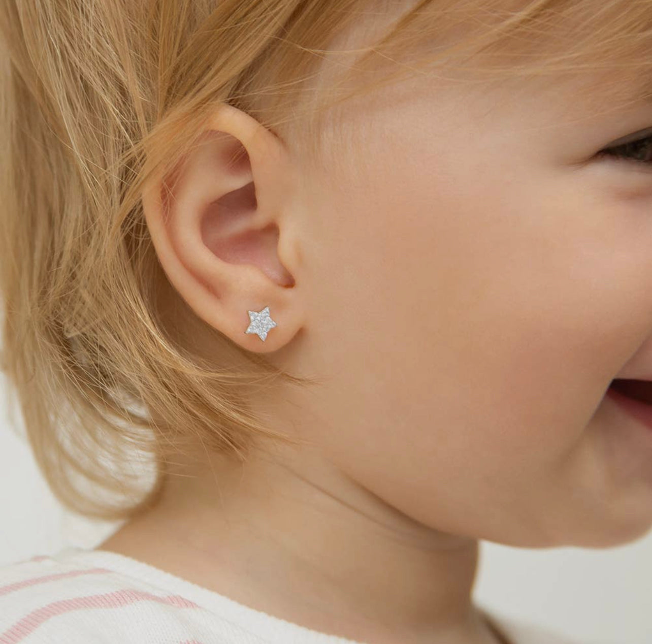 Vous préférez ne pas avoir de fermoir papillon, parce que votre fille le trouve douloureux lorsqu'elle dort ou parce qu'elle l'enlève elle-même ? Optez alors pour nos boucles d'oreilles avec fermeture à vis. Vous tournez le fermoir à vis autour de l'extrémité de la tige. L'embout de la tige tombe alors complètement dans la fermeture, ce qui empêche la tige de pénétrer dans la tête lorsque l'enfant se couche sur l'oreille. Bien entendu, ces boucles d'oreilles sont tout aussi sûres que les boucles d'oreilles à fermoir papillon.